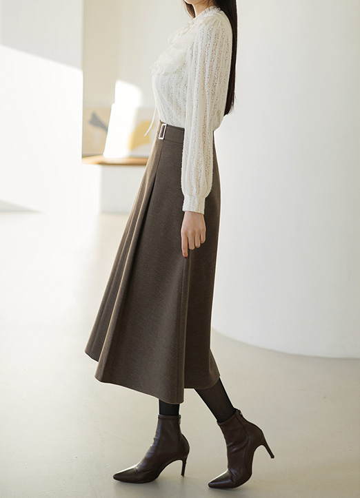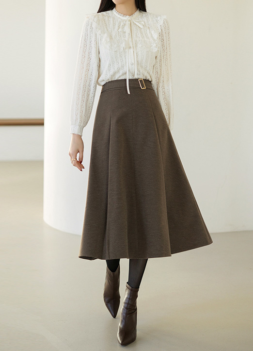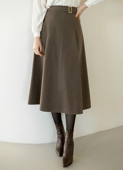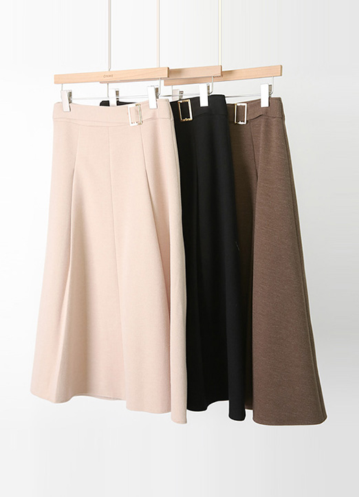 ゴールドバックルポイント ミモレ丈フレアスカート sk30916