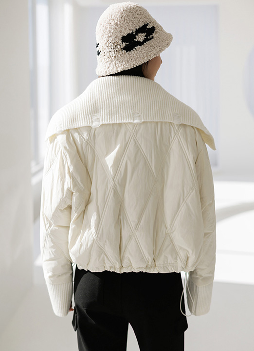 レイヤード風 ダメージワイドカラー クロップド ダウンジャケット jp30948
