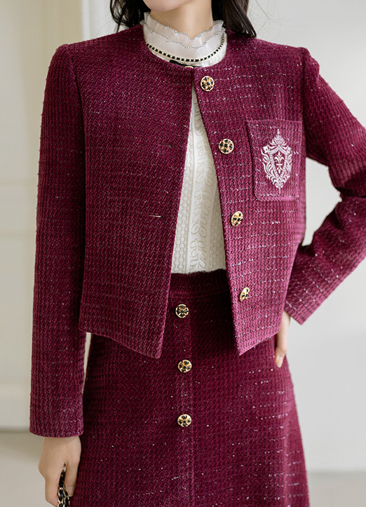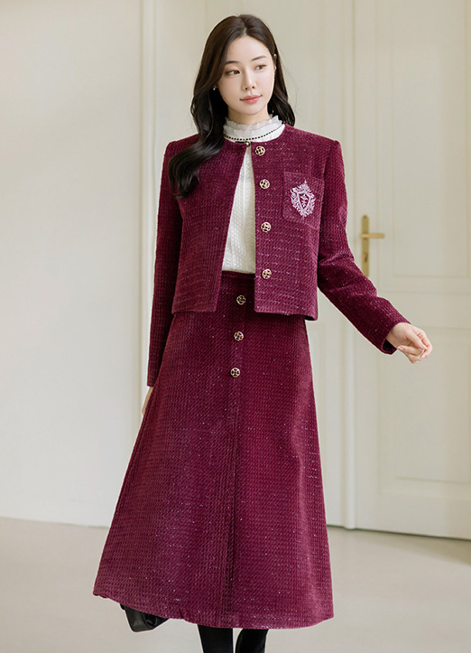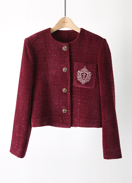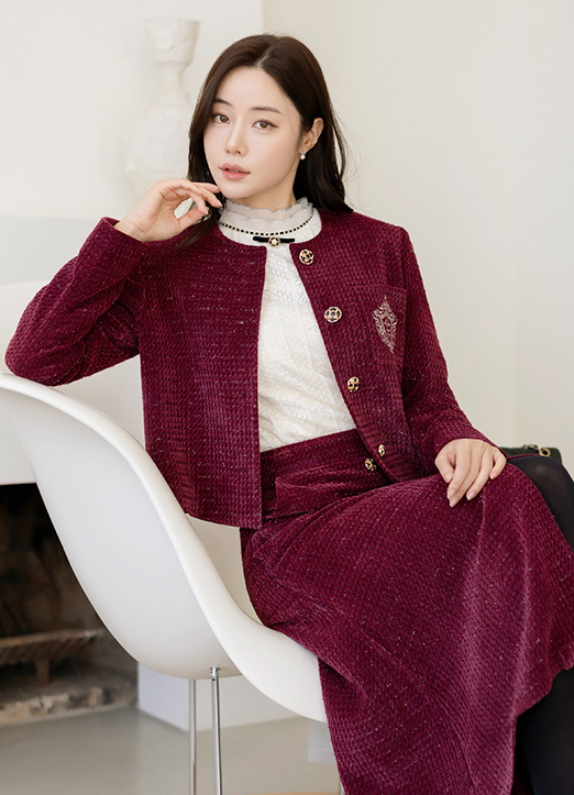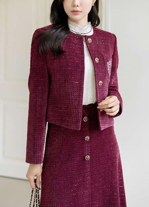 [LouisAngel] ベロアタッチノーカラーラメツイードジャケット jk30992