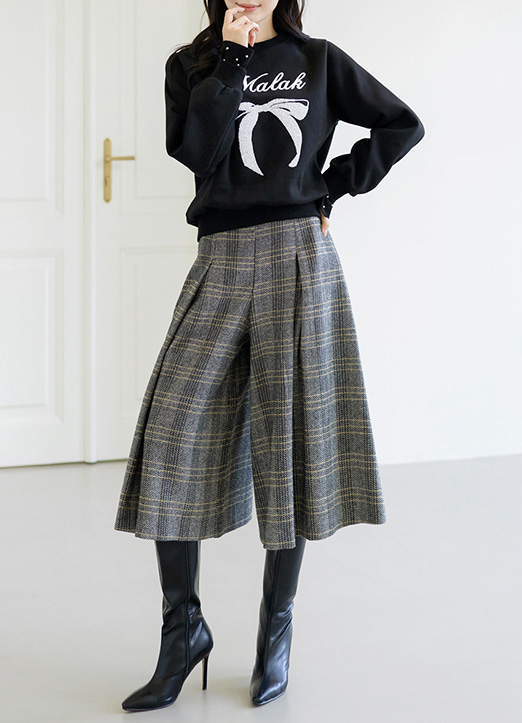 [LouisAngel] ウールブレンドチェック プリーツキュロット pt31012
