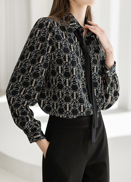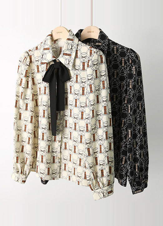 [LouisAngel] 2WAYリボンタイ付きレトロ風プリントブラウス bl31152