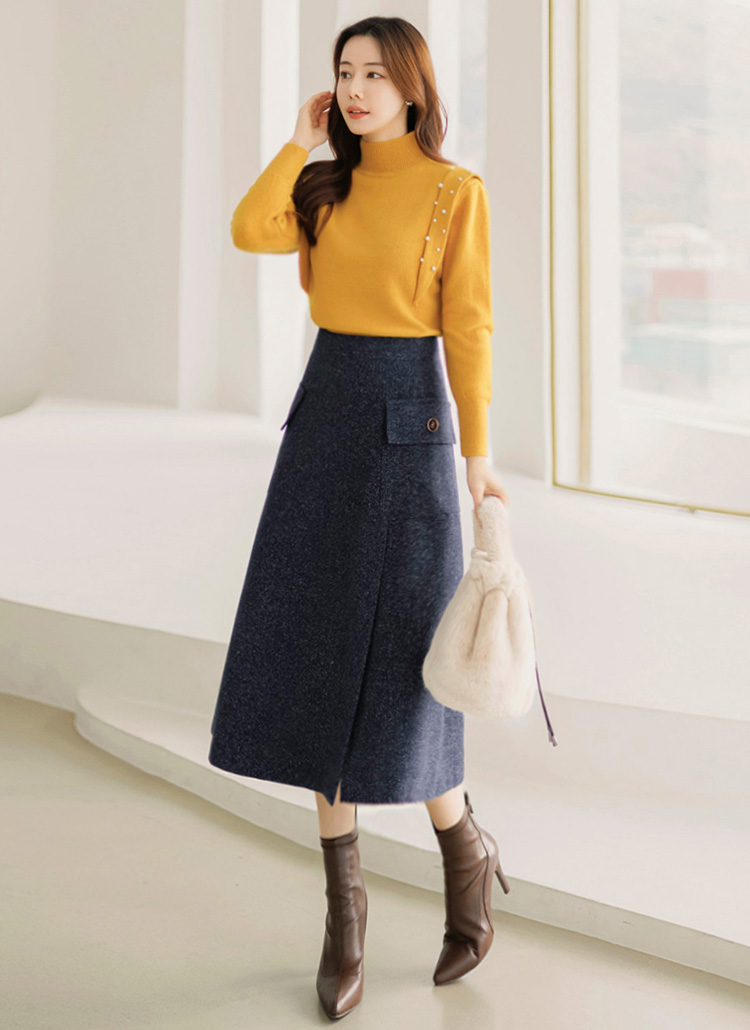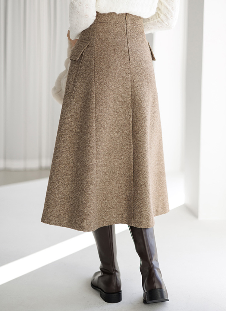[LouisAngel] ウールブレンドミックスカラー サイドポケット フレアスカート sk31276