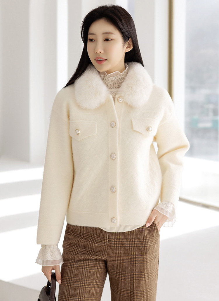 ファーカラーフェイクアンゴラニットジャケット jk31552
