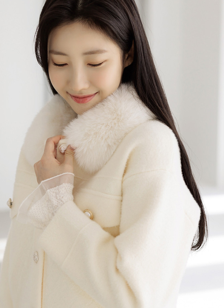 포근한 날개사 소재에 퍼 카라로 따스한 무드가 가득한