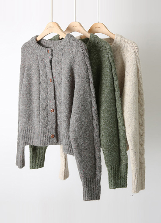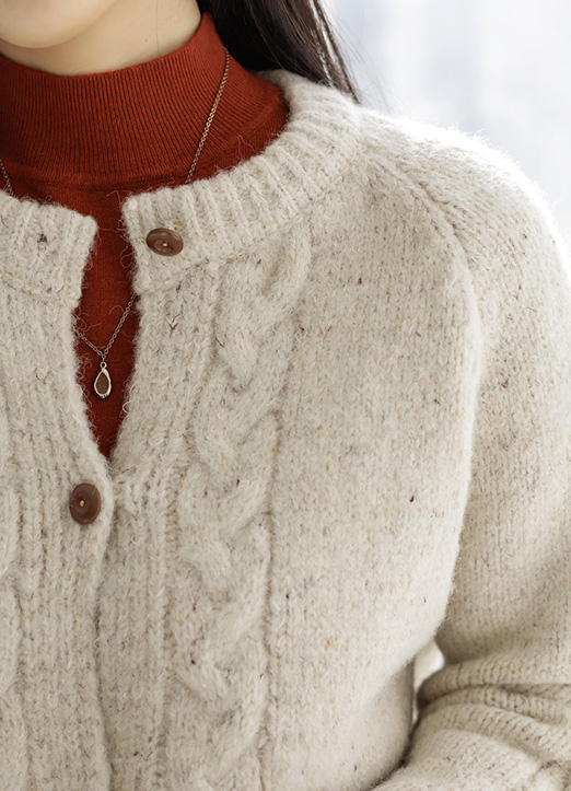 ウールブレンド ケーブルミックスヤーン ニットカーディガン cd31736
