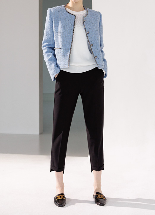 정장 팬츠는 물론 데님과 함께 세미 오피스룩으로 멋스러우며