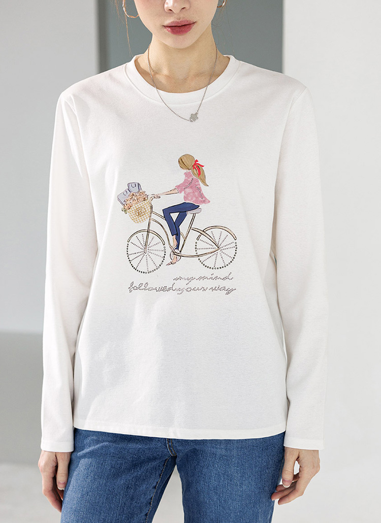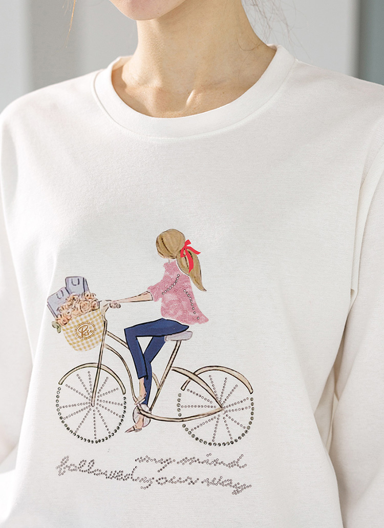 [THE ONME] ラインストーン付き自転車プリントTシャツ ts32322
