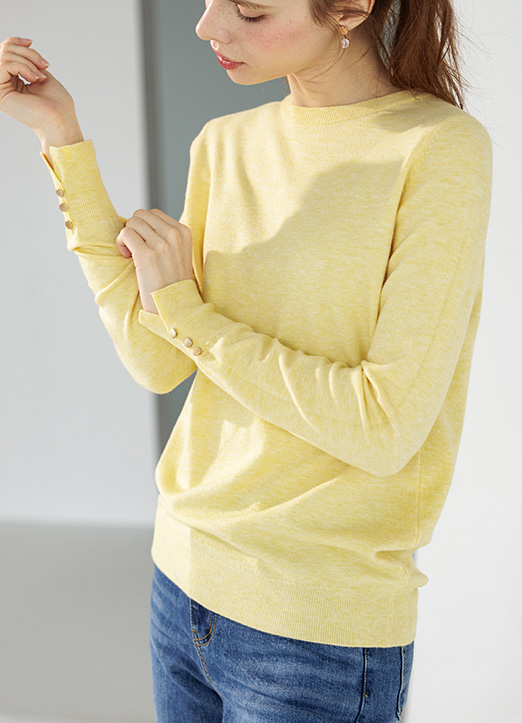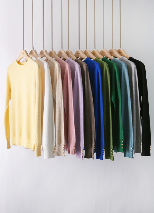 [THE ONME][12色展開] 袖ゴールドボタンビスコースニット nt32330