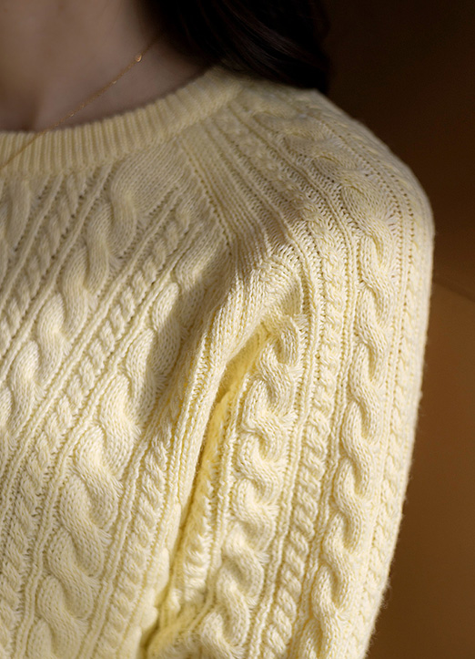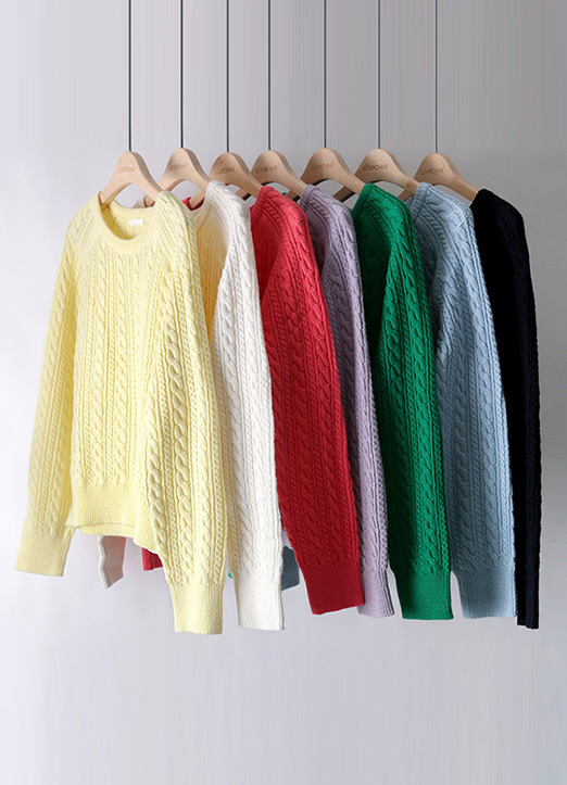 라운드넥으로 깔끔하며 꽈배기 패턴이