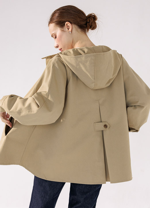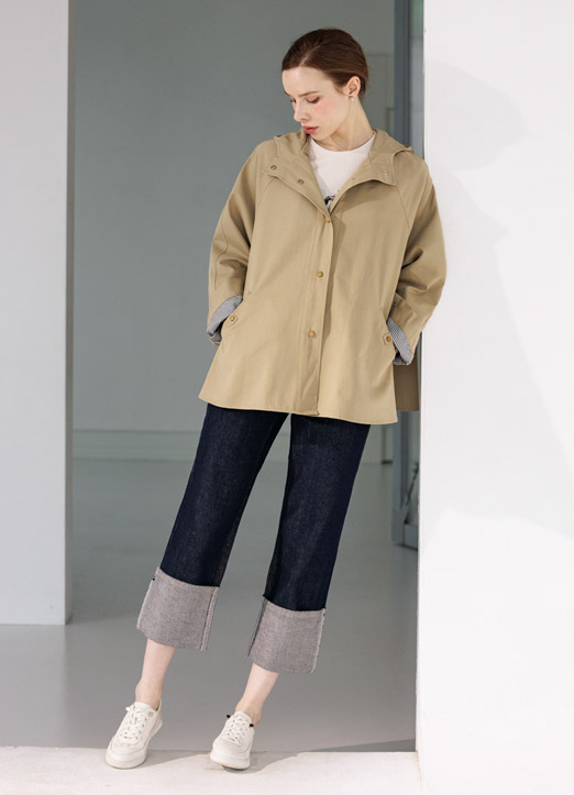 여유있게 입기 좋은 A라인 핏의 트렌치 코트입니다.