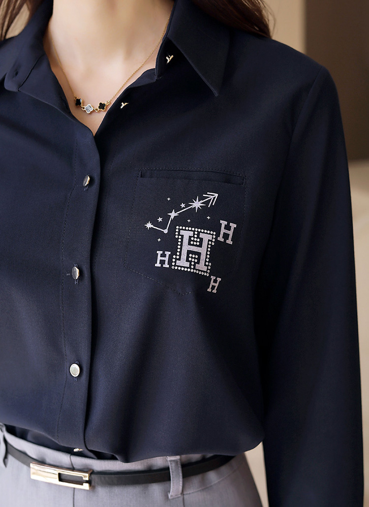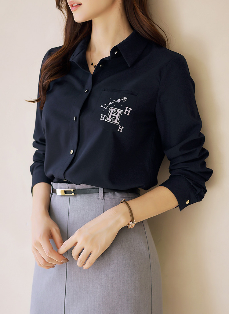 [LouisAngel] ラインストーンロゴポイントシャツブラウス bl32438