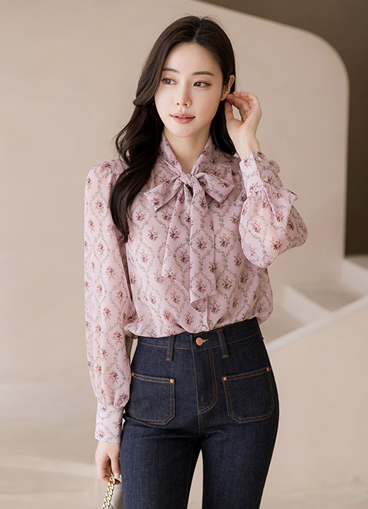 【アナウンサー着用】[LouisAngel] フラワーリボンタイシアーブラウス bl32513