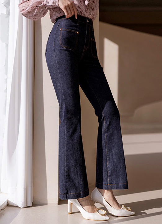 フロントポケットセンターライン フレアデニムパンツ pt32516