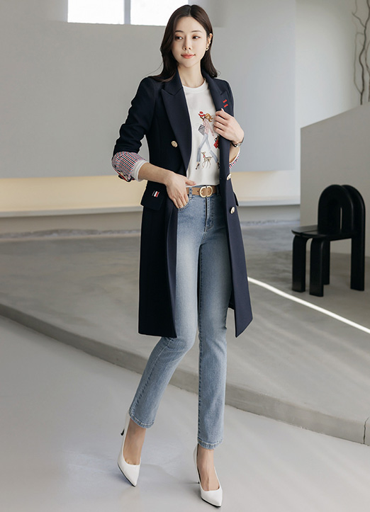 적당한 두께감으로 나와 봄,가을 간절기 내내! 활용하시기 좋은 더블 롱 자켓이에요