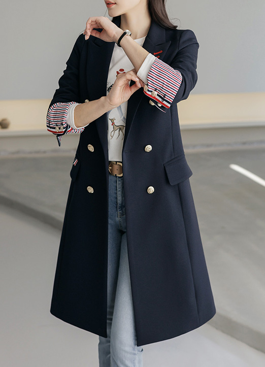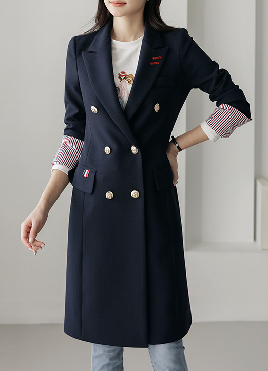 스타일리시하면서 세련된 프렌치 무드를 선사하는 디자인의 더블 롱 자켓이에요