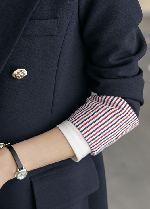 裏地ストライプ テーラードロングダブルジャケットjk32525