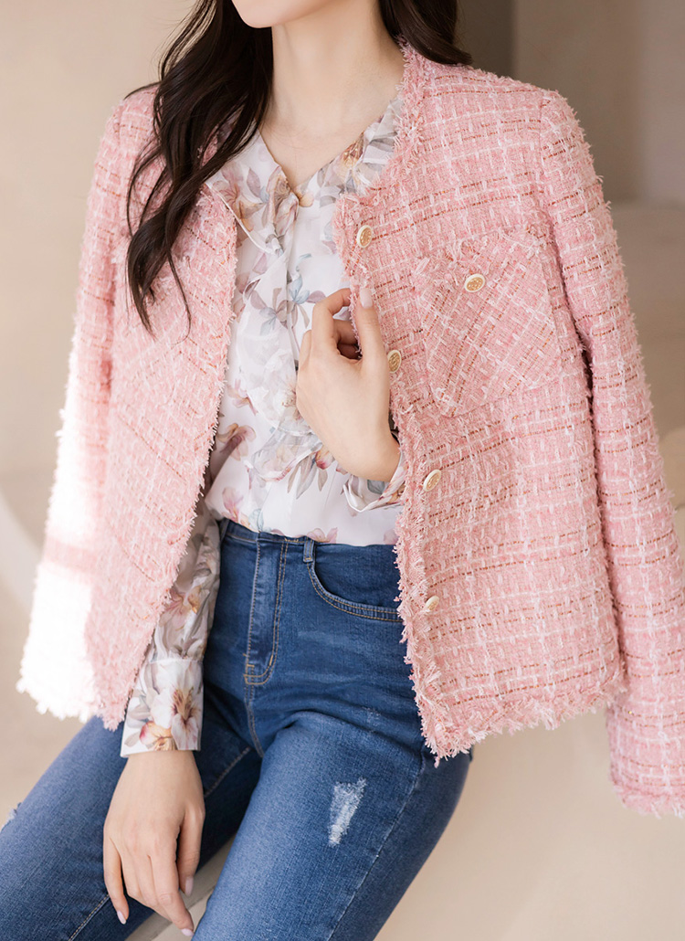 부담없는 두께감으로 간절기에 제격인 트위드 자켓이에요 :)