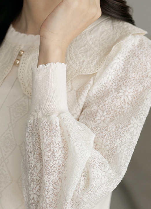 시스루한 소매 레이스 배색으로 실루엣은 더욱 여리여리~예쁘게