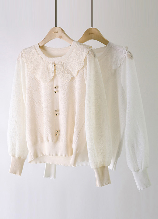 와이드한 레이스 카라는 얼굴을 더 작아보이게~