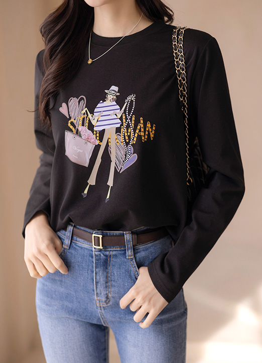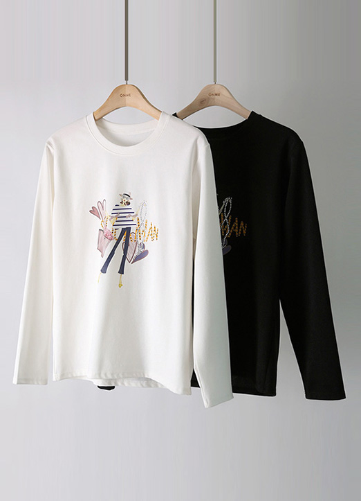 [LouisAngel] ラインストーン付きガールプリントTシャツ ts32557