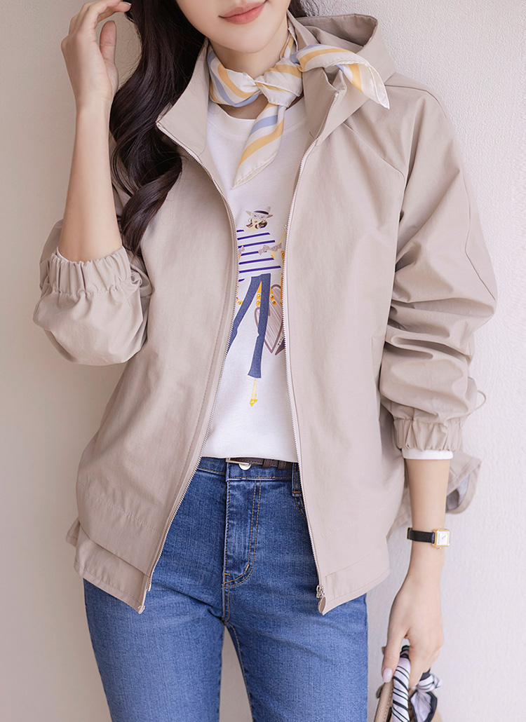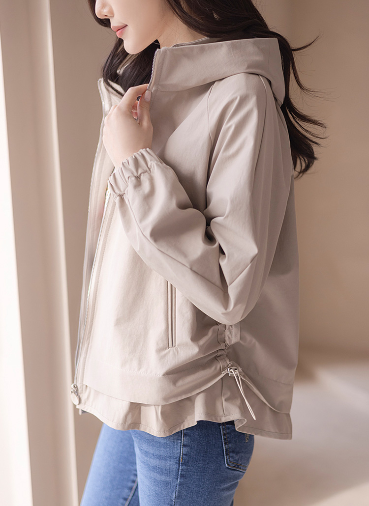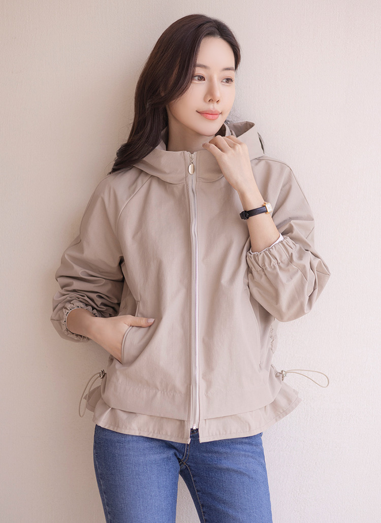 フード付き コットンナイロン ドロストギャザー ジップ ブルゾン jp32560