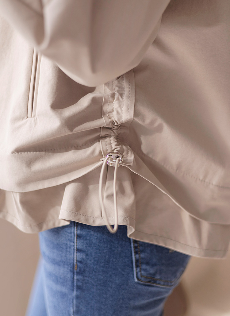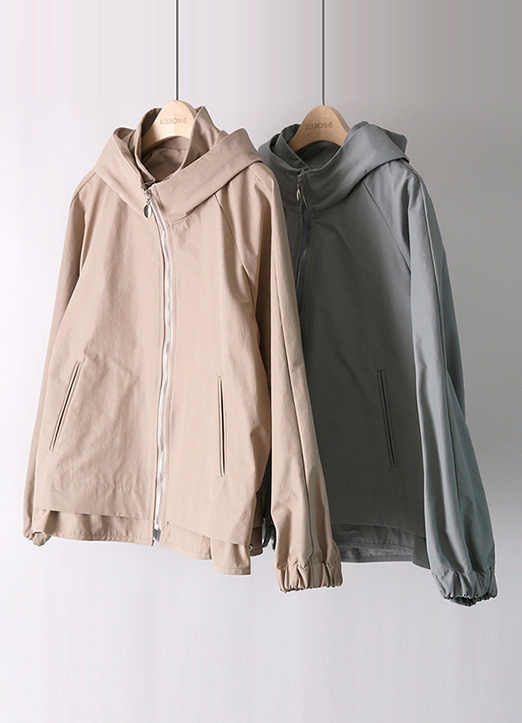 フード付き コットンナイロン ドロストギャザー ジップ ブルゾン jp32560