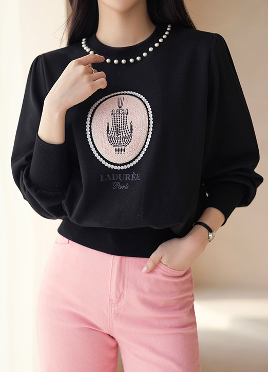 パール付き シャンデリアプリント バックスリット スウェット ts32623
