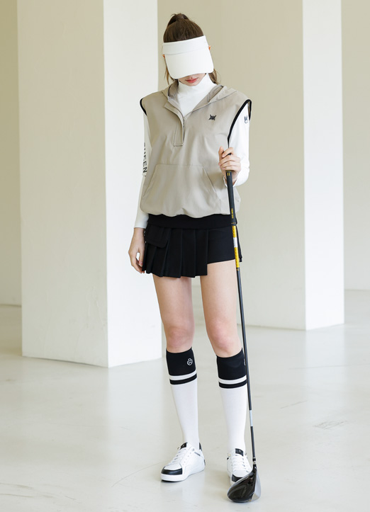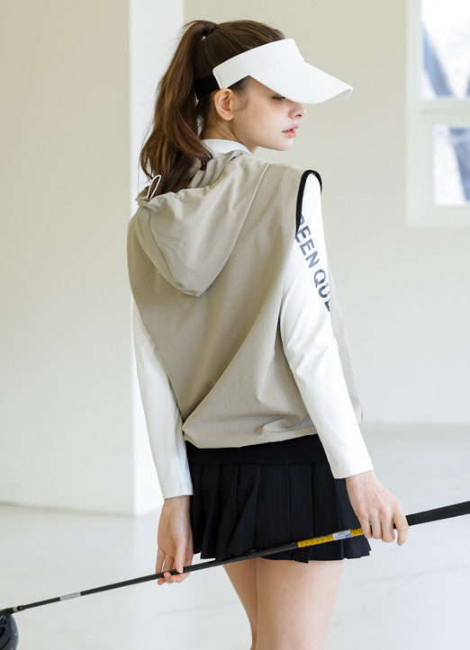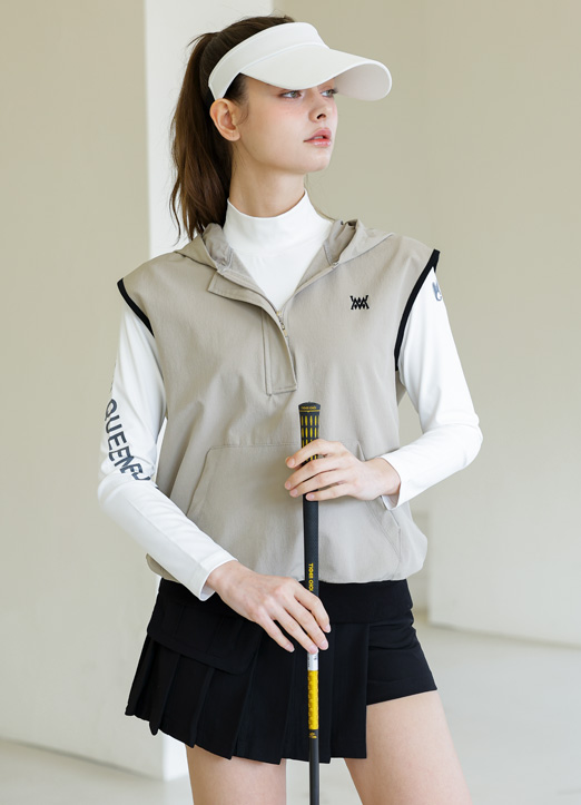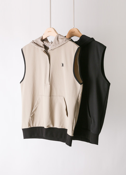 [QoG] 配色パイピングフード付きハーフジップアップベスト vt32629