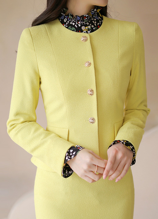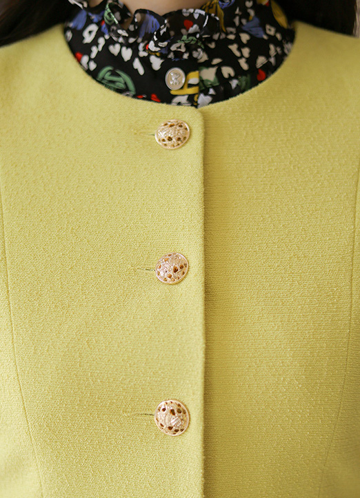 볼드한 금장 버튼이 화사함을 더해주고