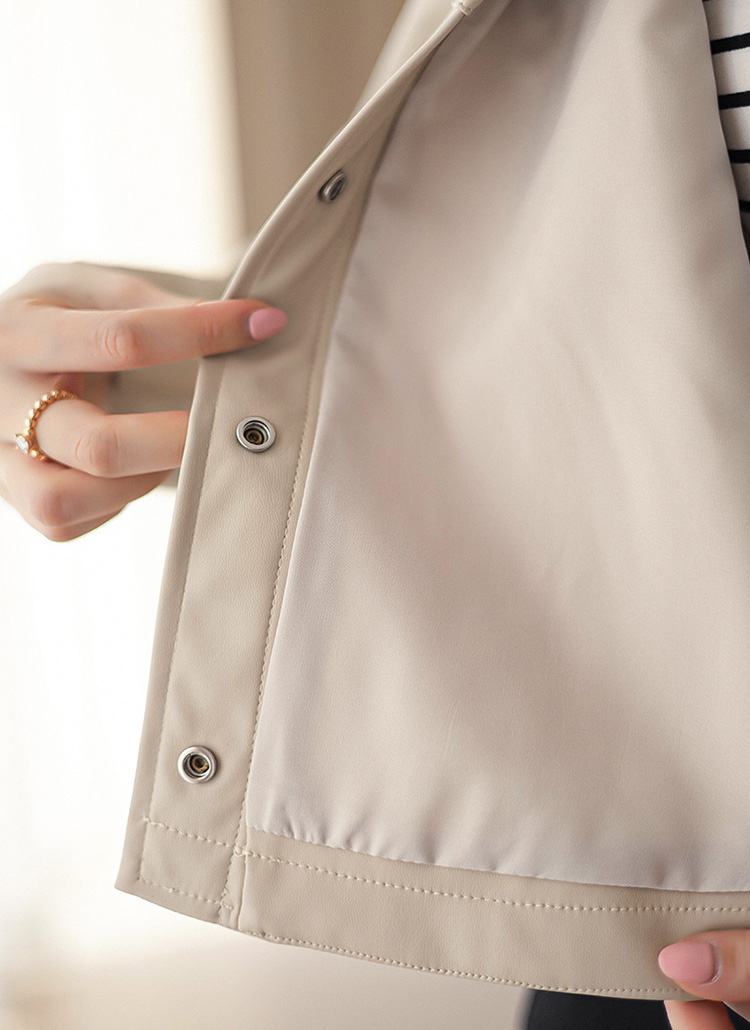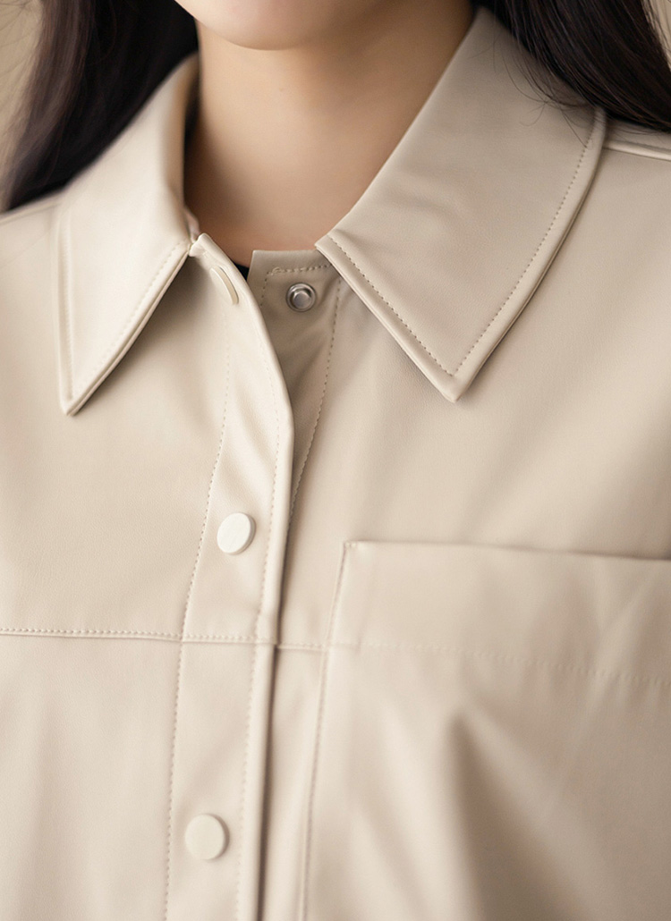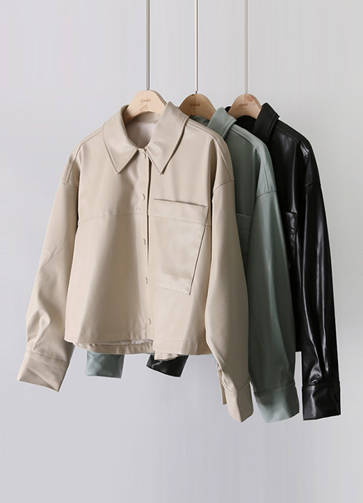 스트링으로 핏 조절이 가능한 레더 자켓이에요 :)