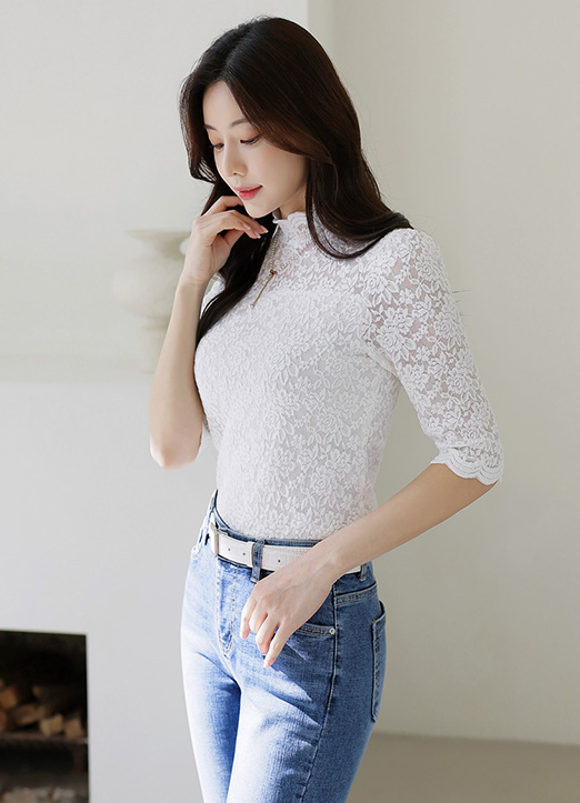 간결하고 쾌적한 착용감으로 즐기실 수 있는 레이스 블라우스 티에요~
