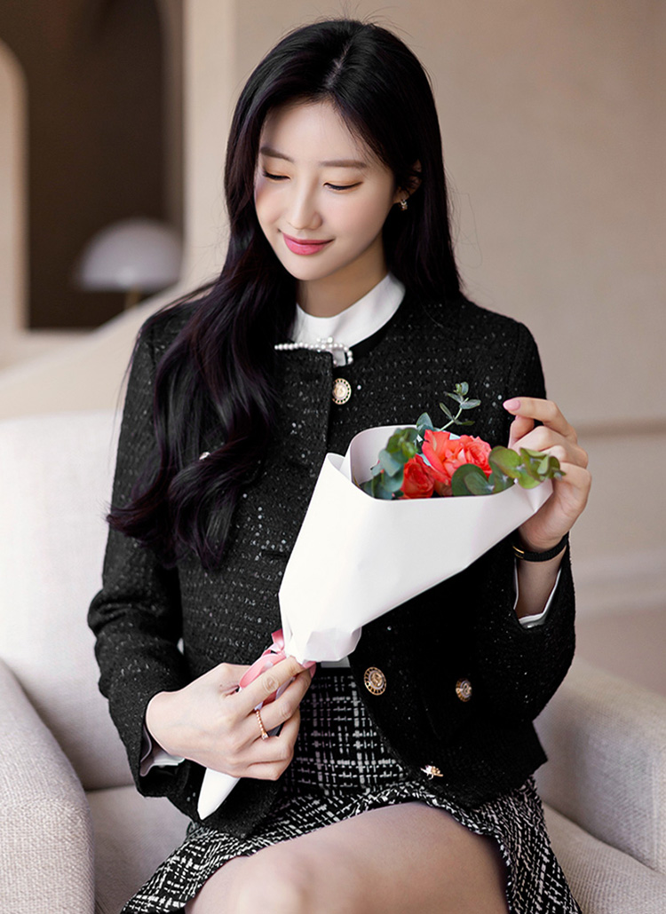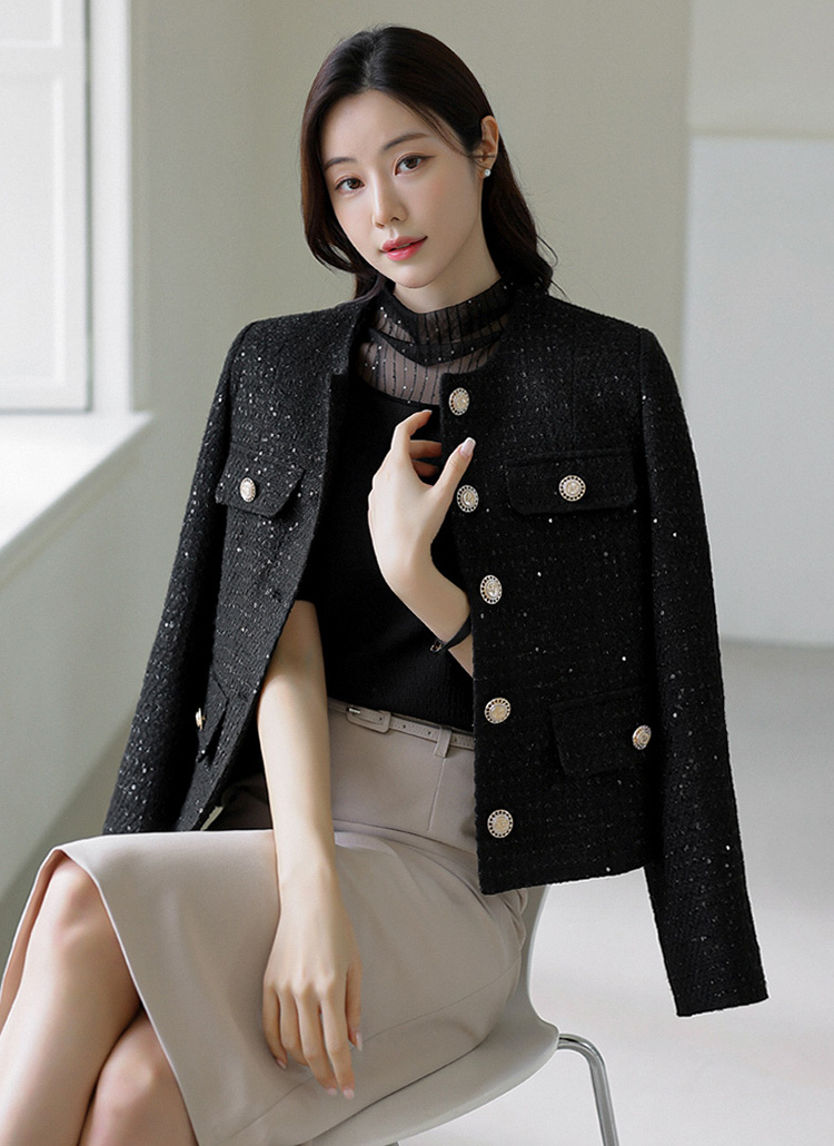 스팽글로 화사함을 더해준 트위드 자켓이에요 :)