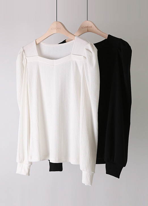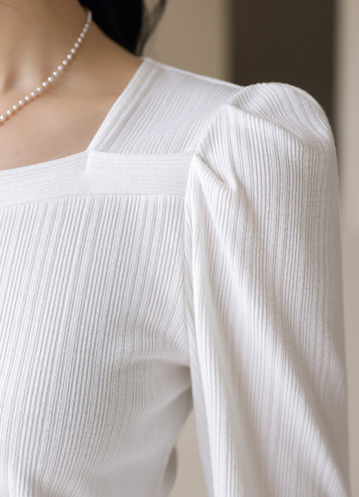 깔끔한 스퀘어 넥과 퍼프 디자인이 여성스러운 분위기를 표현해