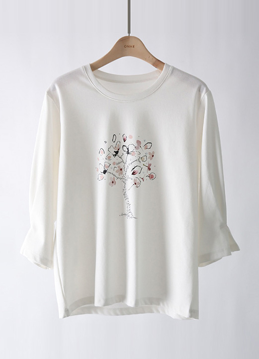 [LouisAngel] フラワーツリープリント 袖タックスリーブTシャツ ts32978