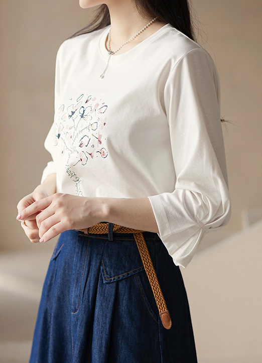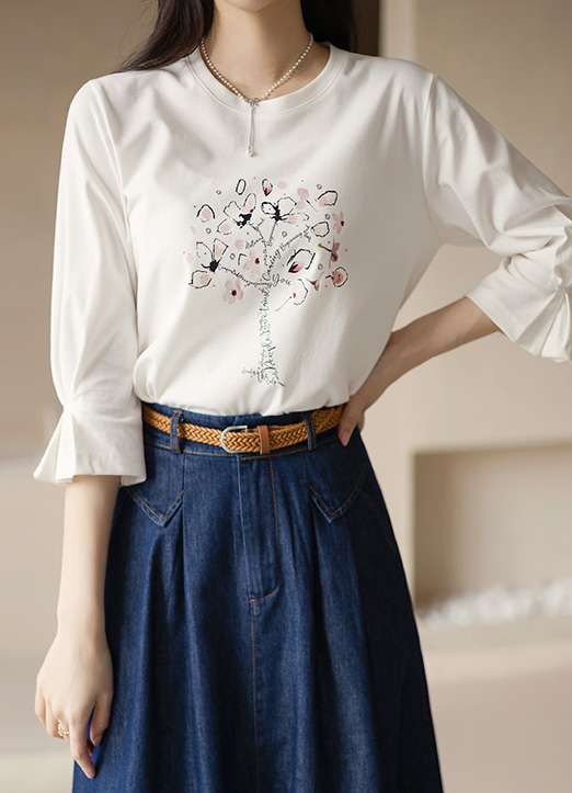[LouisAngel] フラワーツリープリント 袖タックスリーブTシャツ ts32978