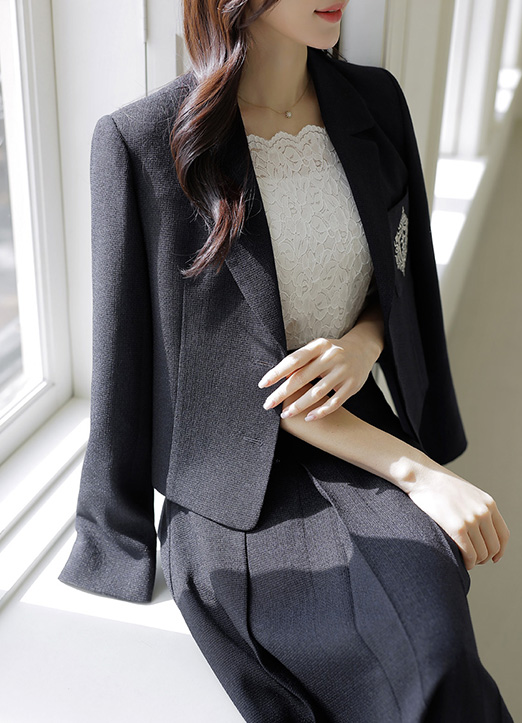 [루이스엔젤] 블리제 로고 자수 포인트 세미 크롭 테일러드 자켓