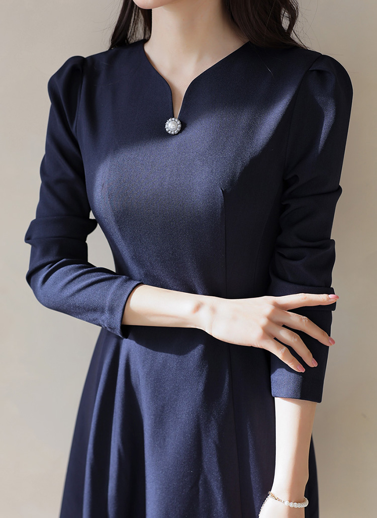 パールビジューポイント キーネックフレアワンピース op33269
