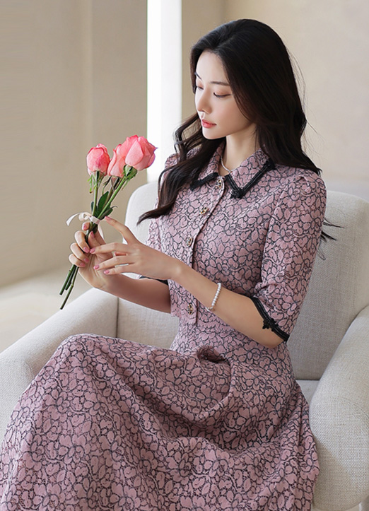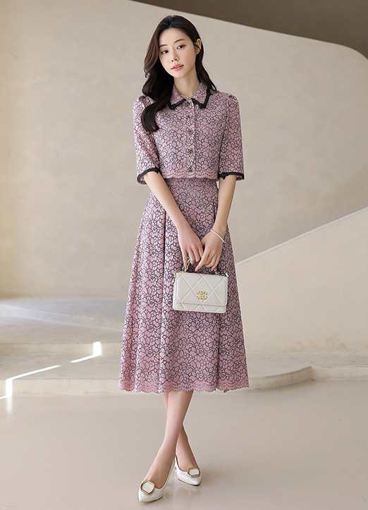 플라워 레이스 소재에 배색 레이스라인을 더해