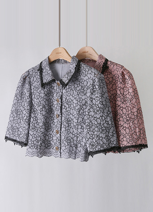 [LouisAngel] フラワーレースバイカラークロップド半袖ブラウス bl33443