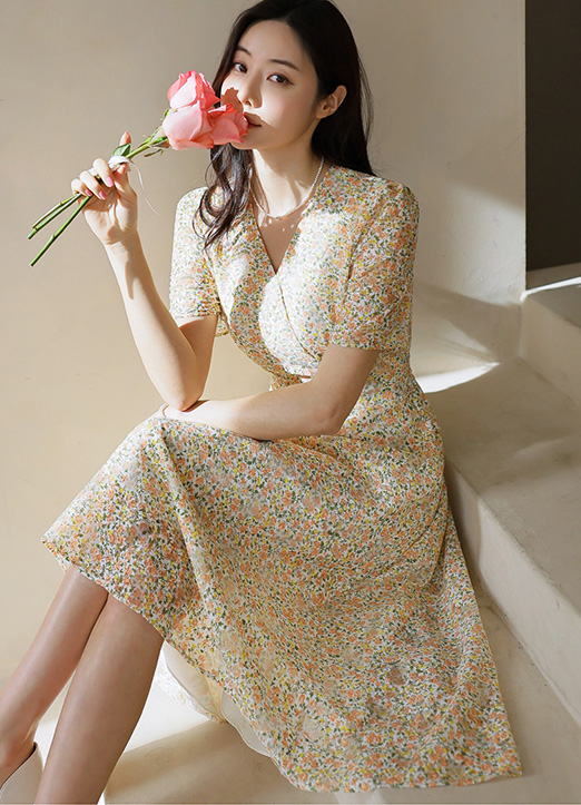 [LouisAngel] ニュアンスカラーフラワーラップフレアワンピース op33521