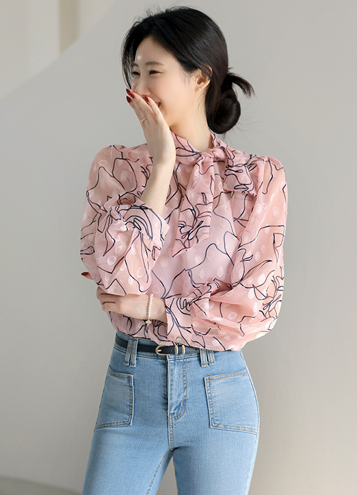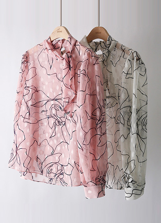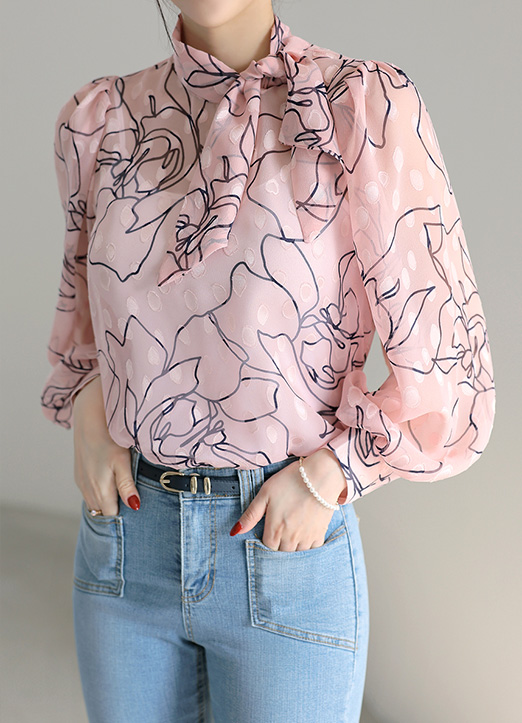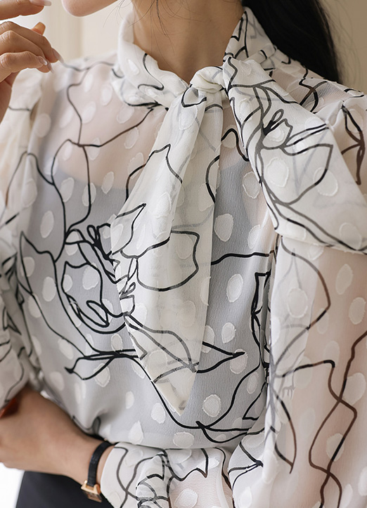 [LouisAngel] ボウタイネック フラワー カットジャガード シアーブラウス bl33578