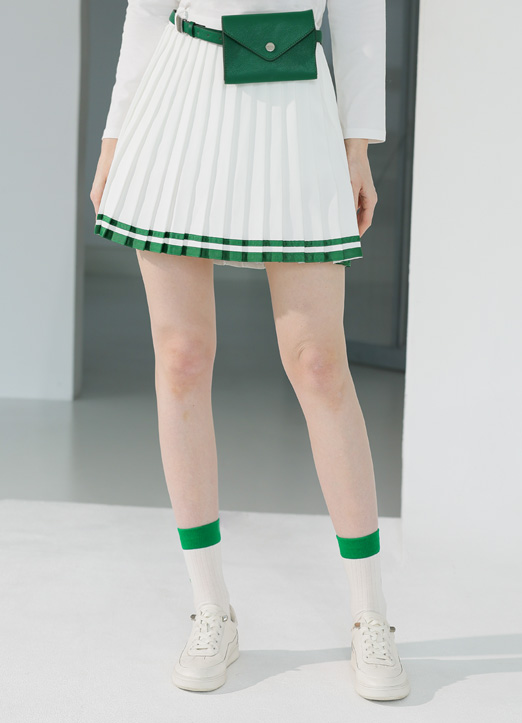 [QoG] 配色ラインプリーツスカート sk33776 (インナーパンツ付き)
