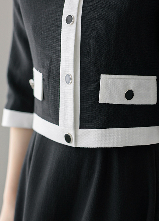 화이트 배색 스퀘어넥으로 화사한 포인트를 준