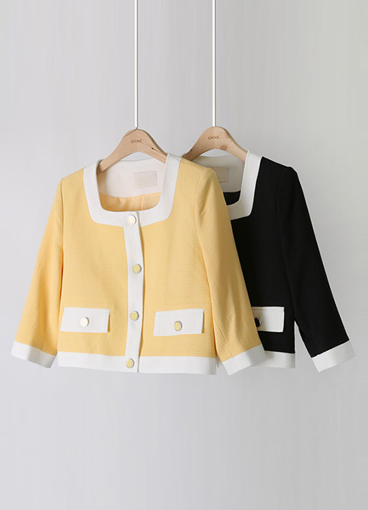 スクエアネック バイカラー 7分袖 ツイードジャケット jk33869