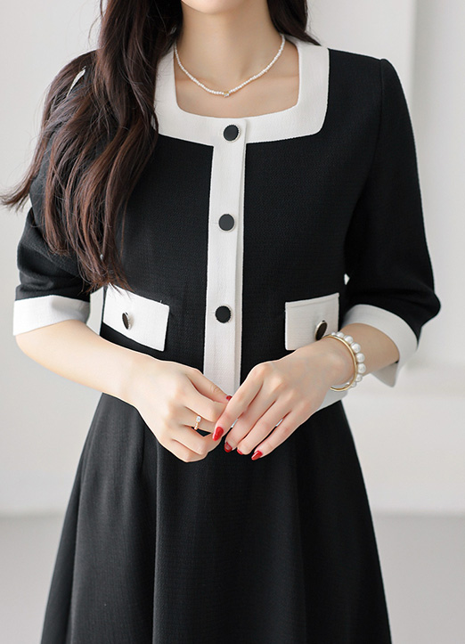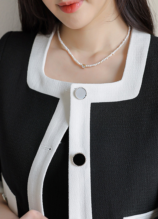 화이트 배색 스퀘어넥으로 화사한 포인트를 준