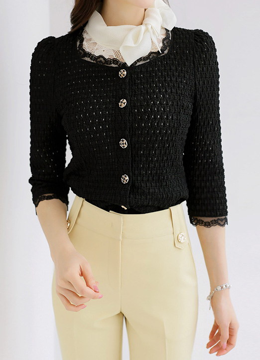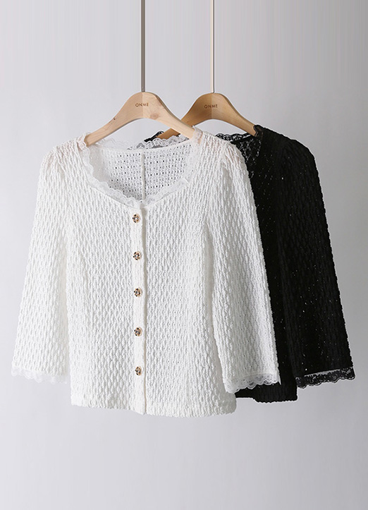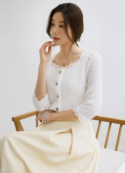[LouisAngel] スクエアネック 7分袖 エンボスカーディガン cd33920