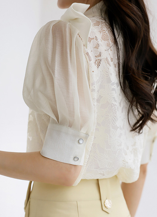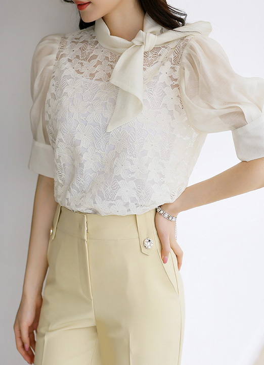 [LouisAngel] リボンタイフラワーレースブラウス bl33950