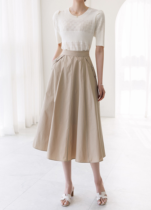 나일론 소재로 탄탄하고 가볍게 퍼지는 우아한 플레어 스커트