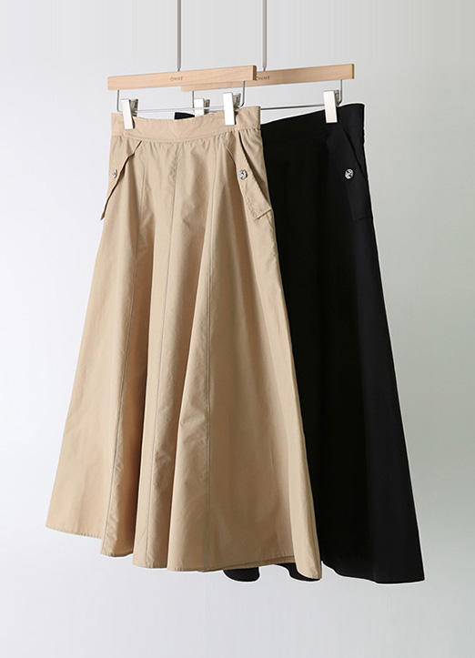 [THE ONME] コットンナイロン サイドポケット フレアスカート sk34106