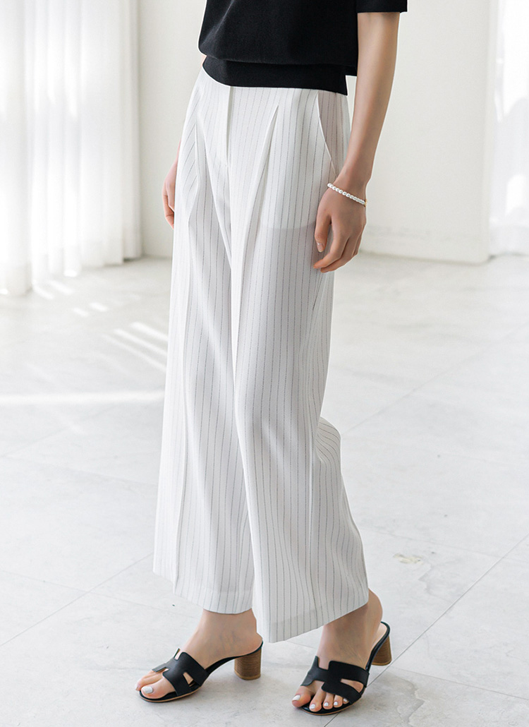 원핀턱 디테일로 깔끔한 핏을 선사하며
